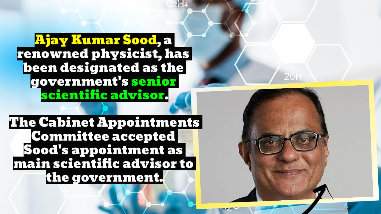 - The Cabinet Appointments Committee accepted Sood’s appointment as the main scientific advisor to the government.