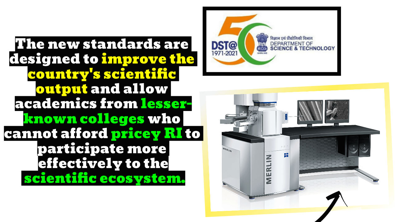 - The new standards are designed to improve the country’s scientific output and allow academics from lesser-known colleges who cannot afford pricey RI to participate more effectively in the scientific ecosystem.